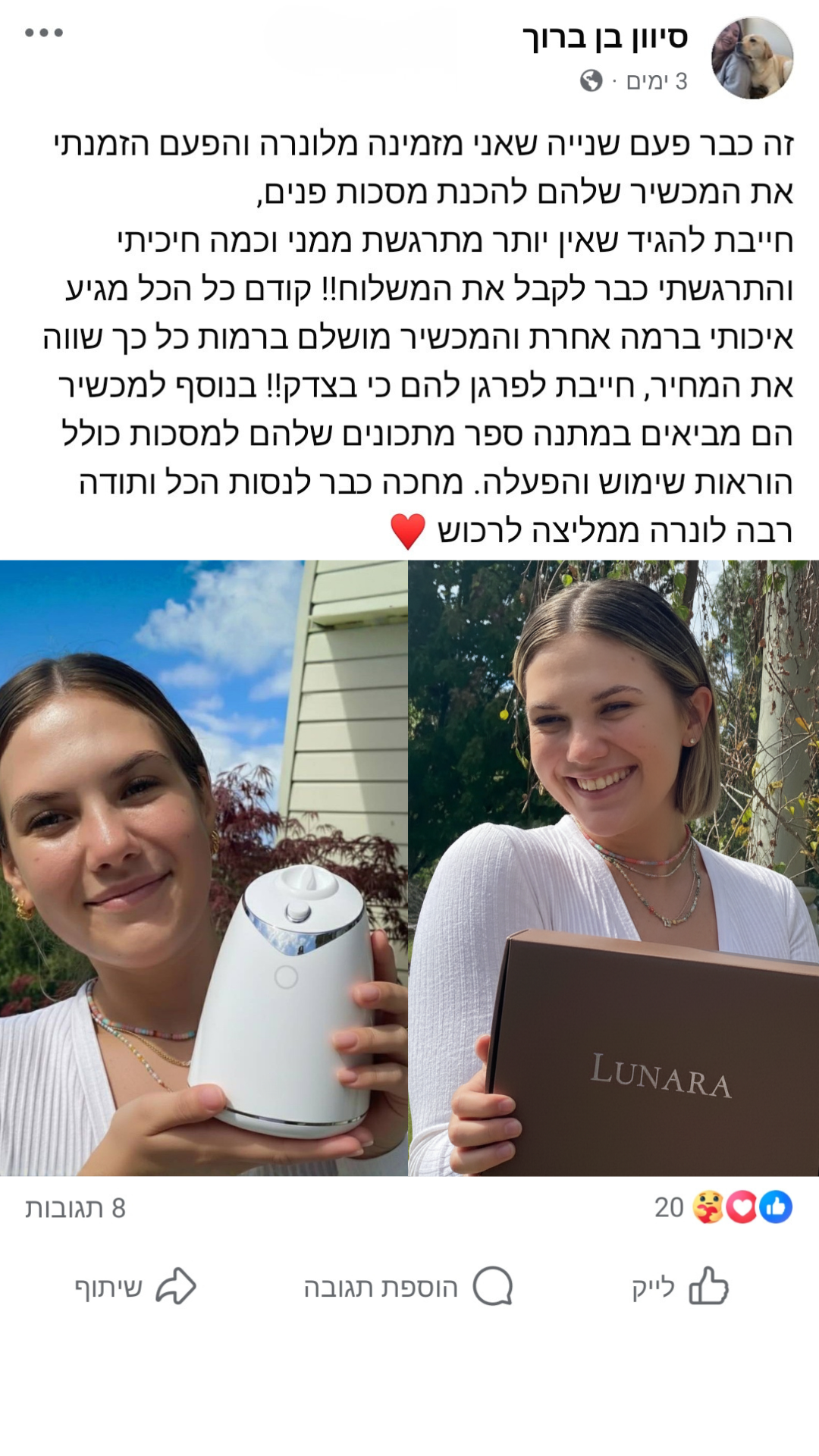 5. מומלץ להשתמש 10–20 דקות בלבד, 3–4 פעמים בשבוע.