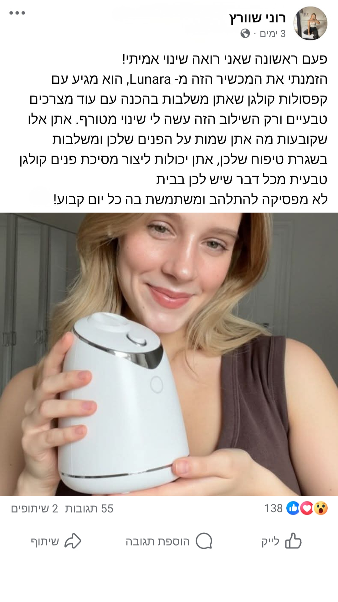 מסכת הלד ספא מבית Lunara - מכשיר מהפכני פורץ דרך עם 7 נורות לד, מעניק טיפול מתקדם ומקצועי לעור הפנים והצוואר.